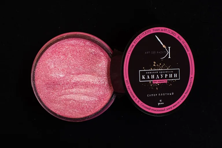 Кандурин - пищевой краситель, порошок с блеском для окрашивания поверхностей и украшения кондитерских изделий. Кандурин – это совершено безопасный пищевой краситель, который имеет нейтральный вкус, легко смывается.